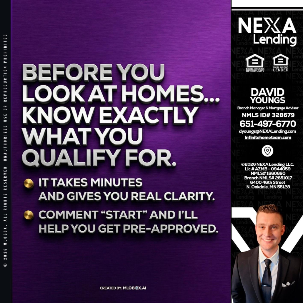 Hi, my name is David Youngs. I’m a Loan Officer with NEXA Lending LLC., offering personalized mortgage solutions, fast customized quotes, great rates and service with integrity.