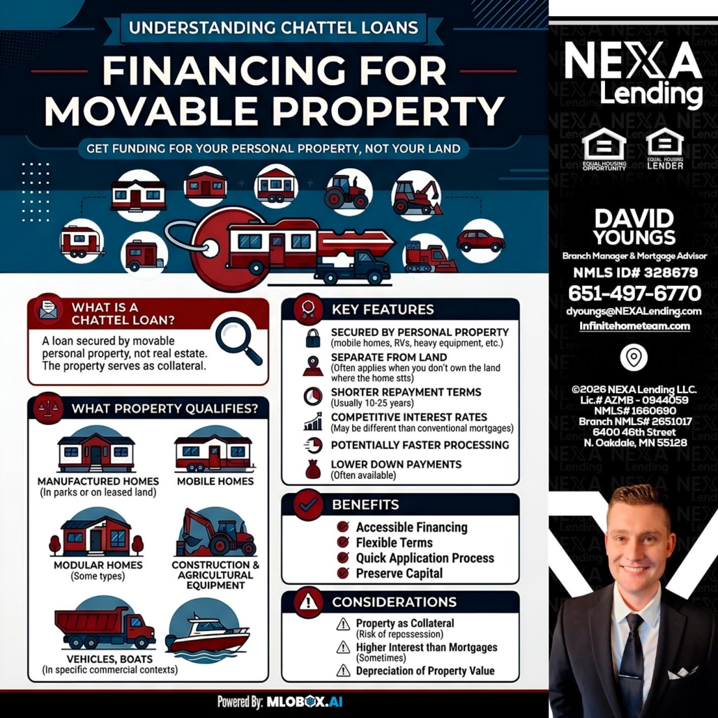 Hi, my name is David Youngs. I’m a Loan Officer offering personalized mortgage solutions, fast customized quotes, great rates and service with integrity. If you’re interested in learning more about the Chattel loan or any other, just let me know and I’ll walk you through your options.