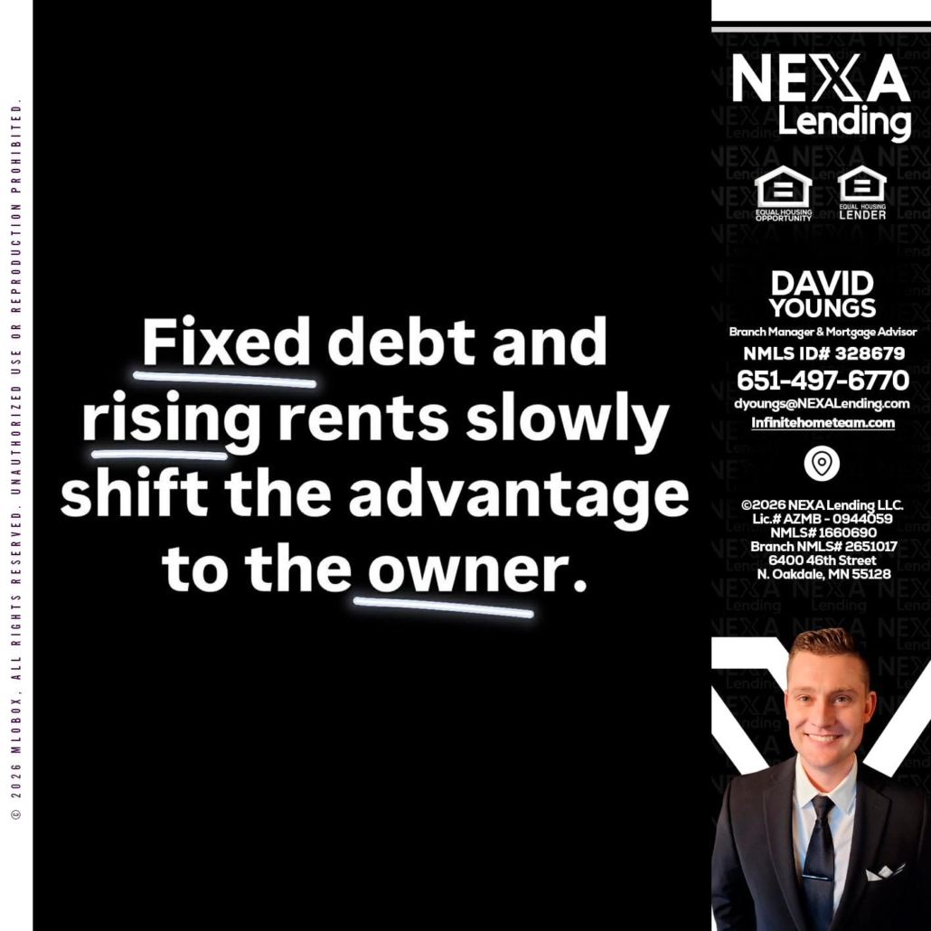 FIXED DEBT - David Youngs -Branch Manager & Mortgage AdvisorHi, my name is David Youngs. I’m a Loan Officer with NEXA Lending LLC., offering personalized mortgage solutions, fast customized quotes, great rates and service with integrity.