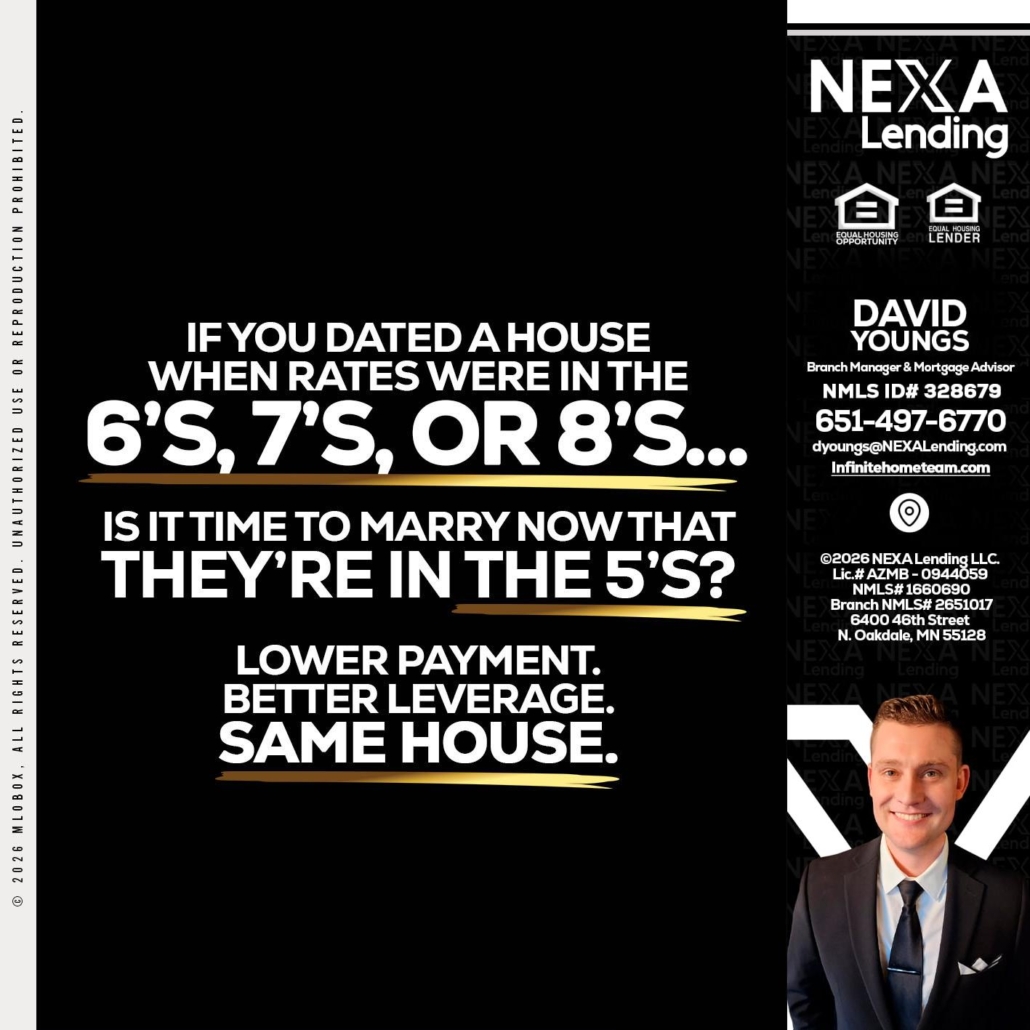 Hi, my name is David Youngs. I’m a Loan Officer with NEXA Lending LLC., offering personalized mortgage solutions, fast customized quotes, great rates and service with integrity.