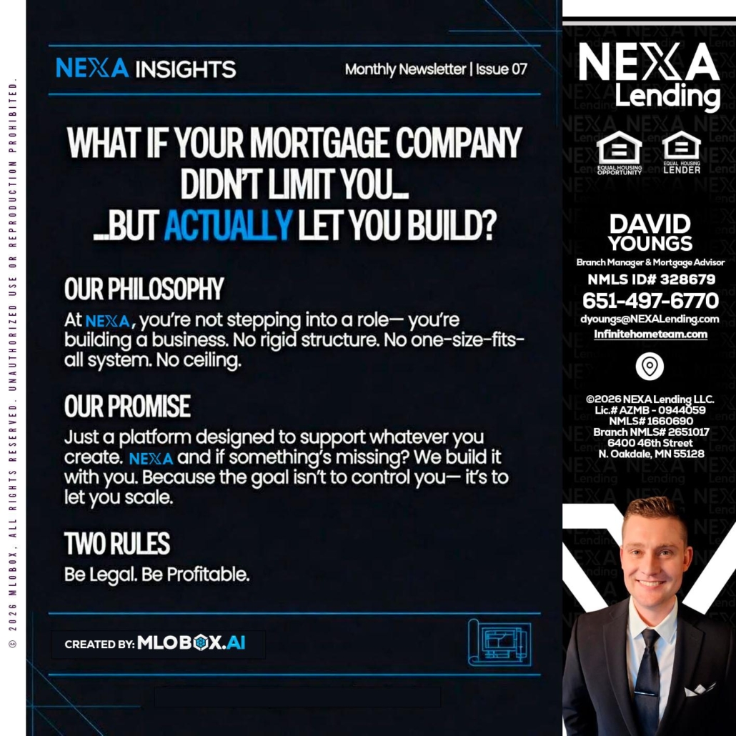 Hi, my name is David Youngs. I’m a Loan Officer with NEXA Lending LLC., offering personalized mortgage solutions, fast customized quotes, great rates and service with integrity.