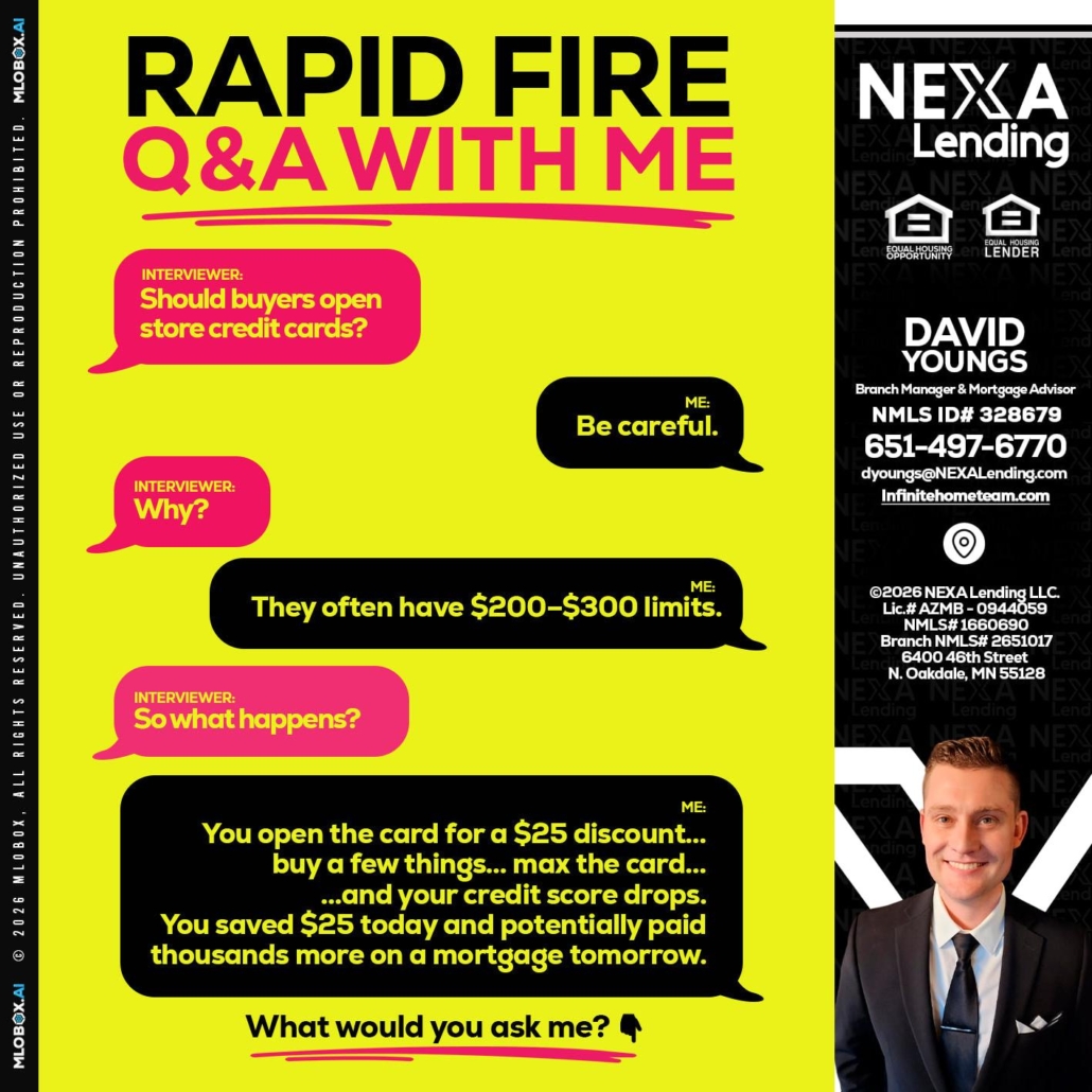 Hi, my name is David Youngs. I’m a Loan Officer with NEXA Lending LLC., offering personalized mortgage solutions, fast customized quotes, great rates and service with integrity.