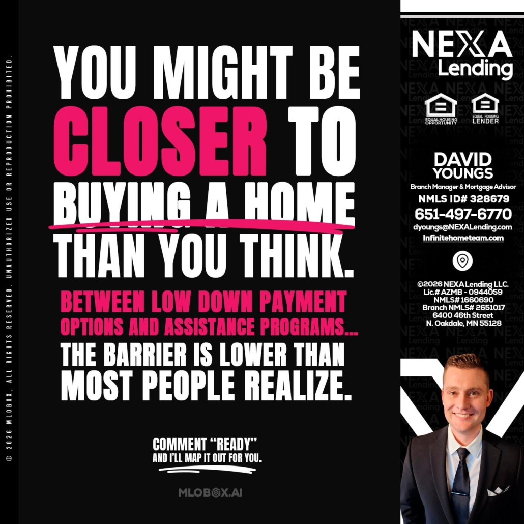 Hi, my name is David Youngs. I’m a Loan Officer with NEXA Lending LLC., offering personalized mortgage solutions, fast customized quotes, great rates and service with integrity.